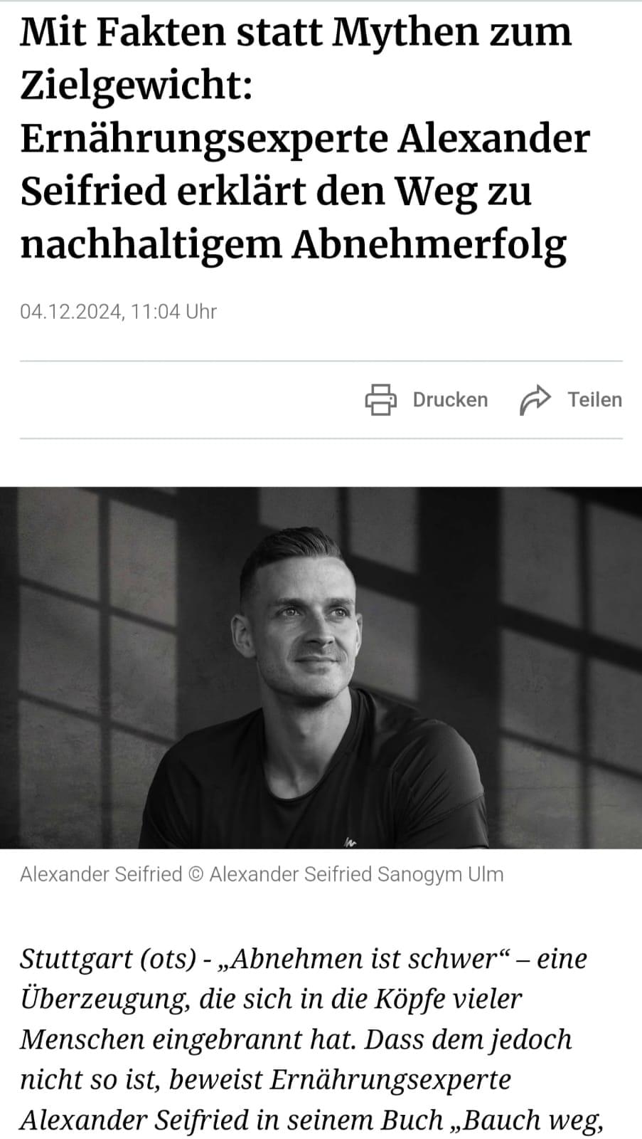 Alexander Seifried ist Ernährungs- und Sportwissenschaftler, ehemaliger Natural Bodybuilding Athlet und Inhaber des Sanogym Personal Training in Ulm.